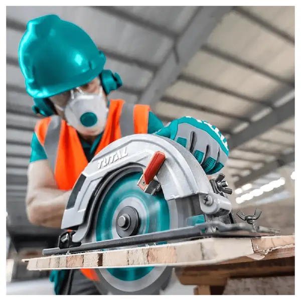 Sierra circular Total de 185 mm con motor de 1600 W, diseñada para cortes rápidos y precisos en madera. Incluye un disco especializado para mayor eficiencia y durabilidad.